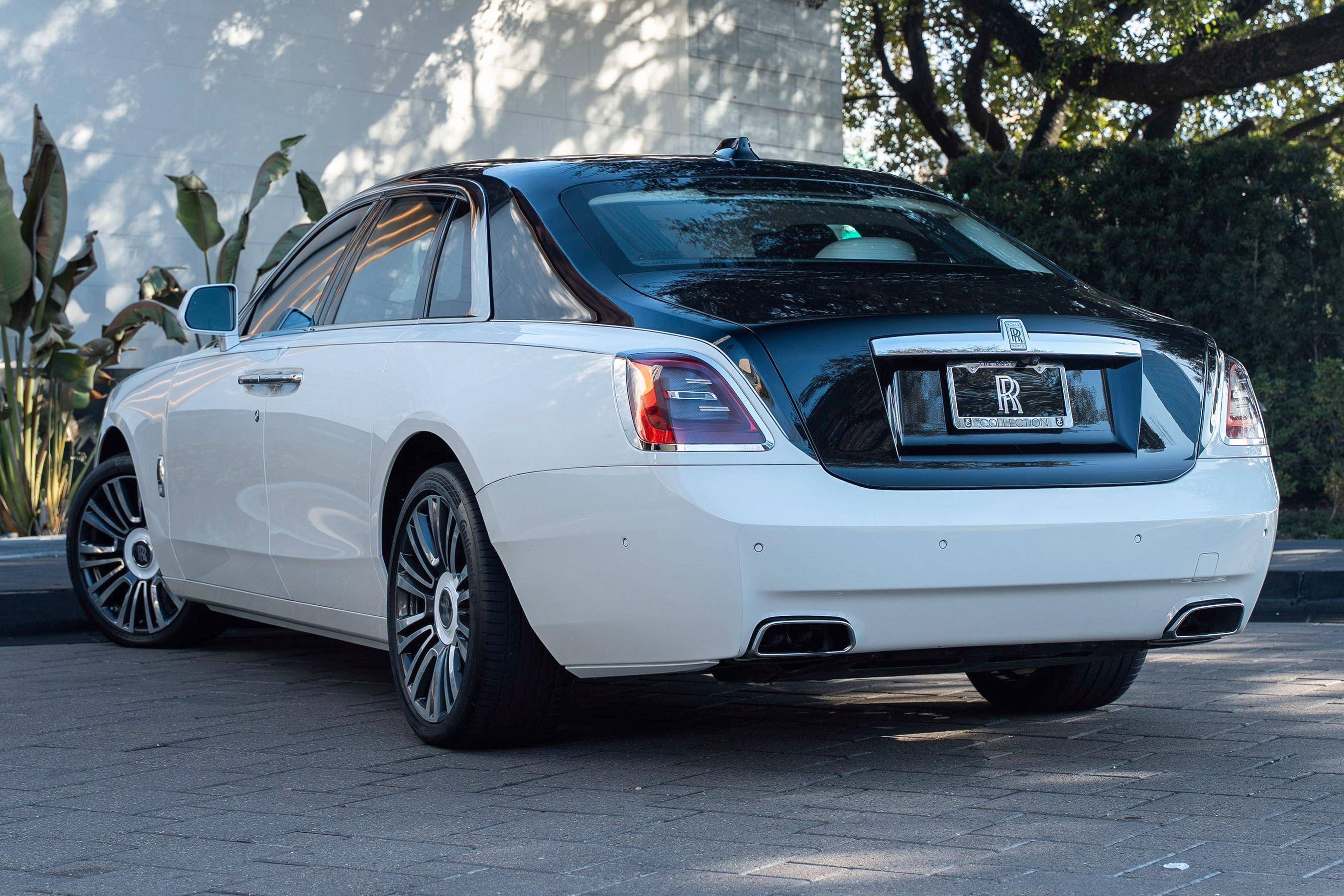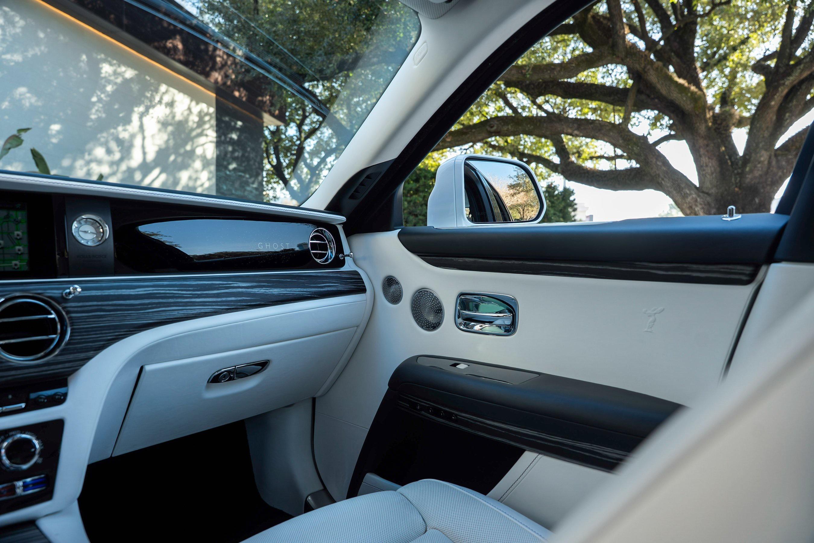 2021 Rolls-Royce Ghost presented by Rolls-Royce Motor Cars Houston. Arctic White Two-Tone Exterior with Arctic White Interior and Black/Purple Accents, this Ghost features GHOST Package, Chrome Plated Visible Exhausts, Body Colored Wheel Centres, Long Coachline, Lambswool Footmats, Indulge Bespoke Clock, Illuminated Fascia, Spirit of Ecstasy Embossed On Doors, Instrument Panel with Inner Stitch, Open Pore- Obsidian Ayous, Veneered Steering Wheel Spokes, Extended Veneer Application - Open Pore. Central Cool Chamber, Shooting Star Headliner, Interior VIN Plate, Rear Compartment Curtains and Rolls-Royce Bespoke Audio.About Post Oak Motor Cars:Post Oak Motor Cars, a Fertitta Automotive Company, proudly represents Bentley, Rolls-Royce Motor Cars Houston, Bugatti, Karma, Lotus, Zenvo, Brabus, Hennessey, and Vintage Modern. Located in the prestigious Post Oak Complex in Uptown Houston, our flagship showroom offers an immersive luxury experience - surrounded by fine dining, designer fashion, luxury spa, and elegant accommodations. We also welcome you to our Lotus of The Woodlands showroom, located at 1501 Lake Robbins Drive. Our state-of-the-art service center and accessories boutique are supported by Certified Brand Representatives who can assist with: