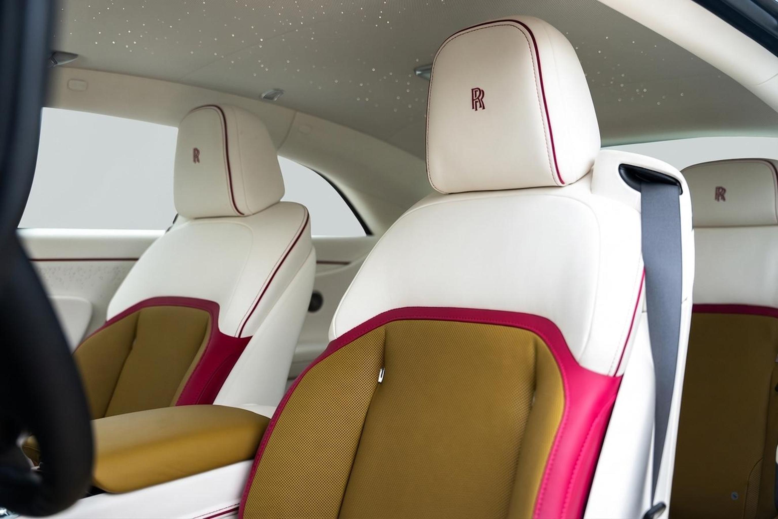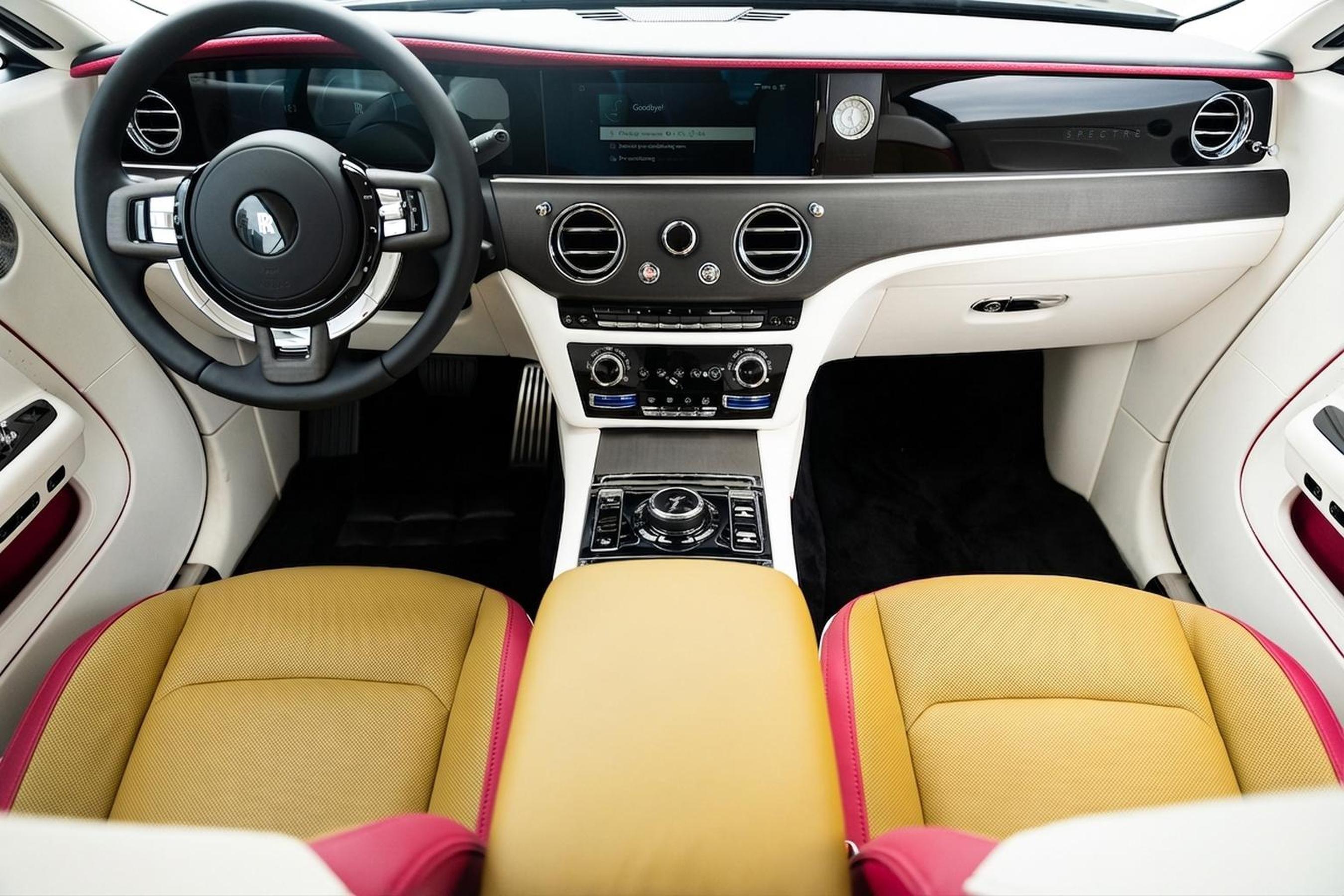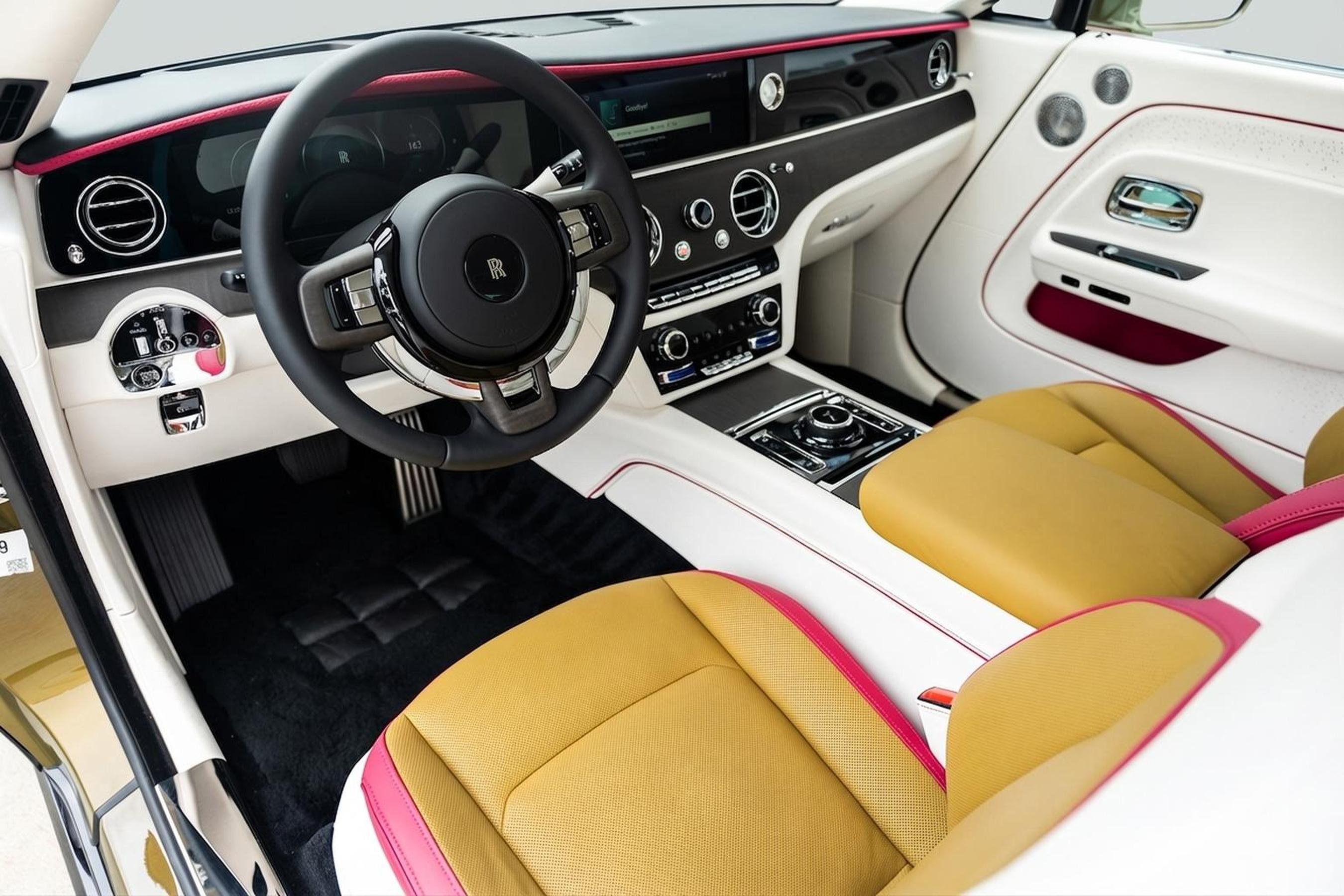 2024 Rolls-Royce Spectre presented by Rolls-Royce Motor Cars. Black Diamond over Chartreuse Exterior and Grace White Interior with Chartreuse/Peony Pink accents, this Spectre features Spectre Launch Package, Aero Two-Tone, 23 7 Spoke Part Polished Wheels, RR Monogram to Headrests in Peony Pink, Lambswool Footmats, Indulge Bespoke Clock, Illuminated Fascia, Starlight Doors, Leather Finishing Pack Grace White, Coloured IP Inner Stitch Peony Pink, Contrast Seat Piping Peony Pink, Coloured Stitching Peony Pink, Extended Piping Peony Pink, Veneered Steering Wheel Spokes, Advanced Driver Assistance Systems, VIN Plaque, Polished Stainless Steel Package, Rolls-Royce Bespoke Audio System and Umbrella Canopy Colour Black.About Post Oak Motor Cars:Post Oak Motor Cars, a Fertitta Automotive Company, proudly represents Bentley, Rolls-Royce Motor Cars Houston, Bugatti, Karma, Lotus, Zenvo, Brabus, Hennessey, and Vintage Modern. Located in the prestigious Post Oak Complex in Uptown Houston, our flagship showroom offers an immersive luxury experience - surrounded by fine dining, designer fashion, luxury spa, and elegant accommodations. We also welcome you to our Lotus of The Woodlands showroom, located at 1501 Lake Robbins Drive. Our state-of-the-art service center and accessories boutique are supported by Certified Brand Representatives who can assist with: